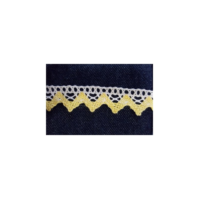 Pamutcsipke 2,1 cm fehér sárga cikkcakkos szélcsipke