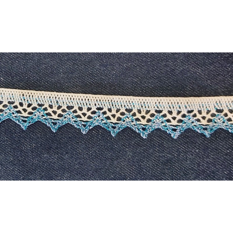 Pamutcsipke 2,5 cm türkiz-fehér cikkcakkos szélcsipke