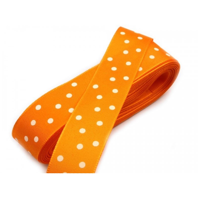 Szalag pöttyös 2,5 cm mandarin fehér pöttyös