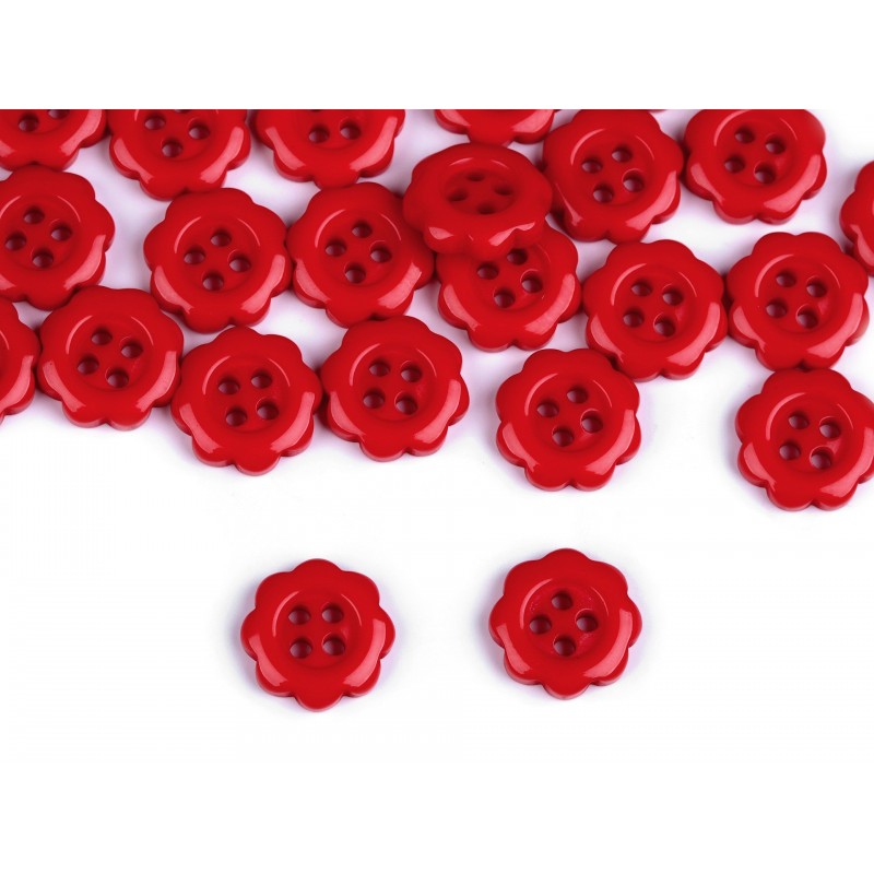 Gomb 1,3 cm piros virág