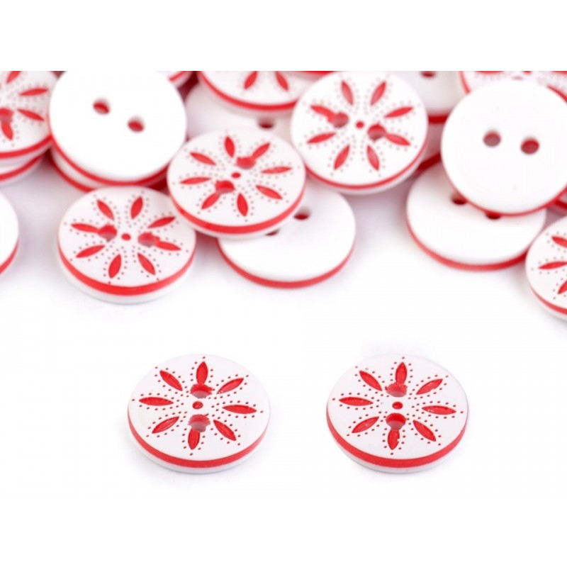 Gomb 1,3 cm piros virágmintás
