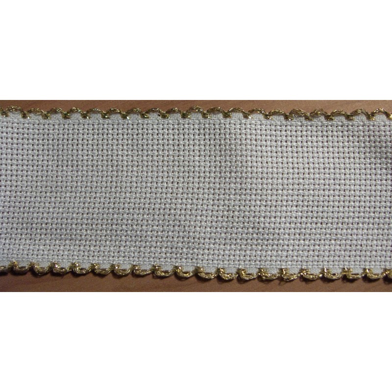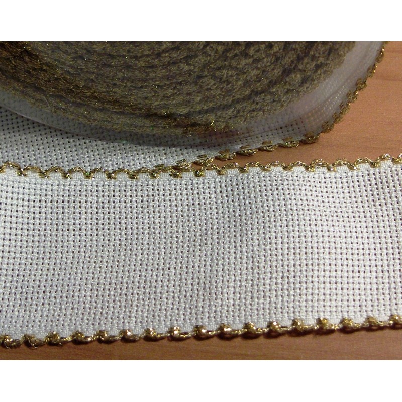 5 cm széles keresztszemes csík fehér színben, aranyszínű szegéllyel.