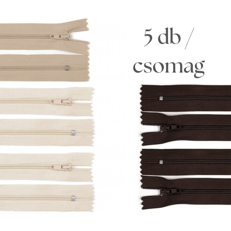 A csomag 5 db 18 cm-es RT0-ás cipzárt tartalmaz.